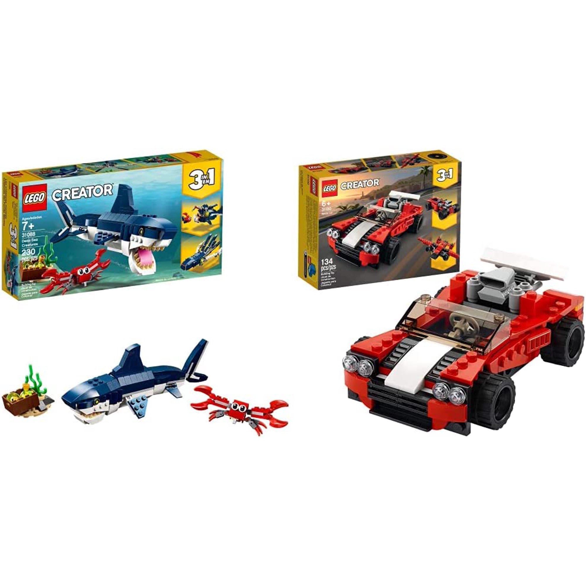 Lego Creator 3in1 Deep Sea Creatures Make A Shark Squid Angler Fish And Crab With This Sea Animal Building Kit 230 Pieces Lego Creator 3in1 Sports Car Toy 31100 Building Kit